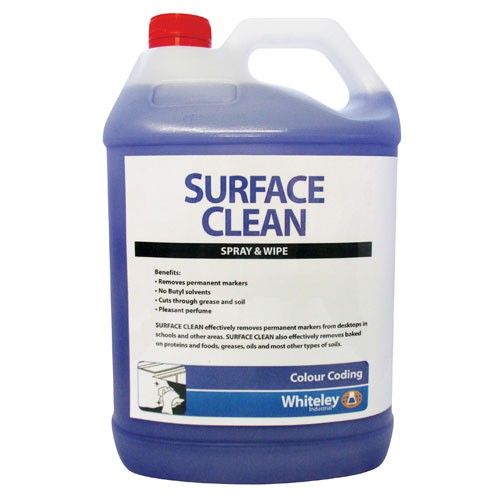 Surface Clean is safe to use on most surfaces including, bench and countertops, sinks and basins, stove tops, glass, porcelain, Formica, and stainless steel. Surface Clean is effective at removing permanent markers from desktops in schools and other areas. Surface Clean also performs superbly as a concrete cleaner. The high foaming detergent system penetrates the porous concrete surface to lift and suspend in-ground, difficult to remove soils.