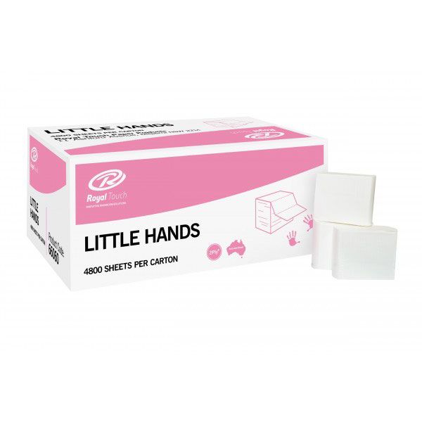 The Royal Touch ‘Little Hands’ is an interleaved hand towel engineered exclusively for small hands. Ideal for use in child care centres, kindergartens and wherever small hands need wiping. Designed to fit the Royal Touch Little Hands Dispenser.