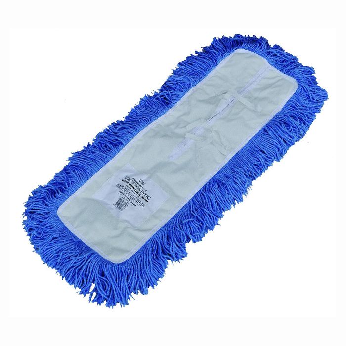 Effective Dust control creates a safer operating environment by reducing airborne harmful particles from being inhaled. Brooms commonly stir up dust as debris and dust is cleared. Using an anti-static mop reduces dust being stirred up as particles adhere more readily to the charged strands. As the mop travels over the floor, it builds electrostatic charge. Keep the same side of the mop facing forward to gather dust more consistently.