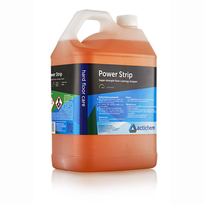 Powerstrip is safe for use on most resilient floors and quickly softens and emulsifies old worn and discoloured finishes for easy removal. Powerstrip is ideal for removing coatings from natural stone, concrete, and terrazzo. Do not use on wood, vinyl, linoleum, and plastic flooring.