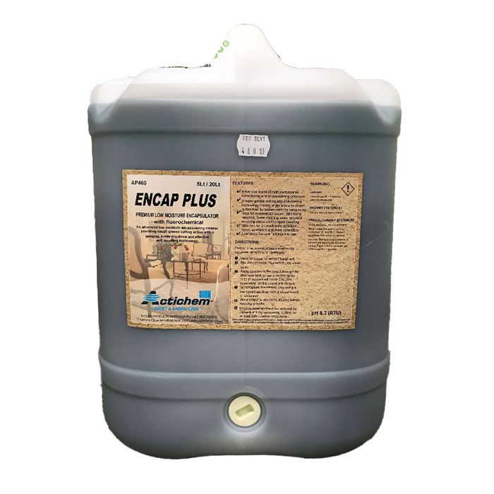 Encap Plus is an advanced low moisture encapsulating carpet cleaning detergent which provides tough grease-cutting action and a brittle dry down and effective anti-resoiling technology.