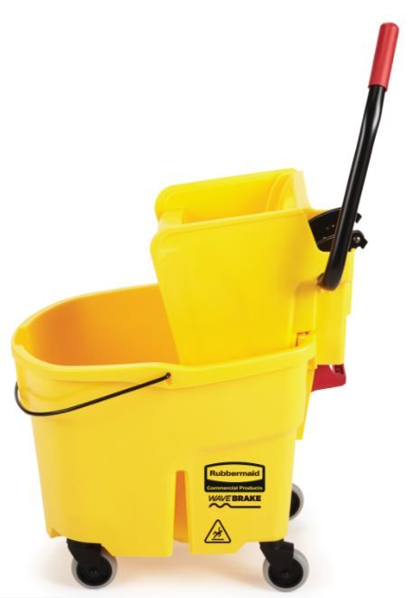 The WaveBrake mope bucket and wringer system is designed to reduce spashing of water and detergent which not only increases a safer environment but clean floors and improved productivity.