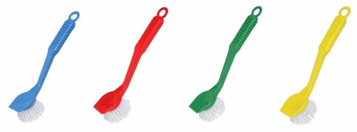 Edco Dish Brush MultiColours – Heavy duty bristles for removing grime – Front scraper removes stubborn grime – Mixed colours per carton – Dimensions: W55 x D40 x L200mm