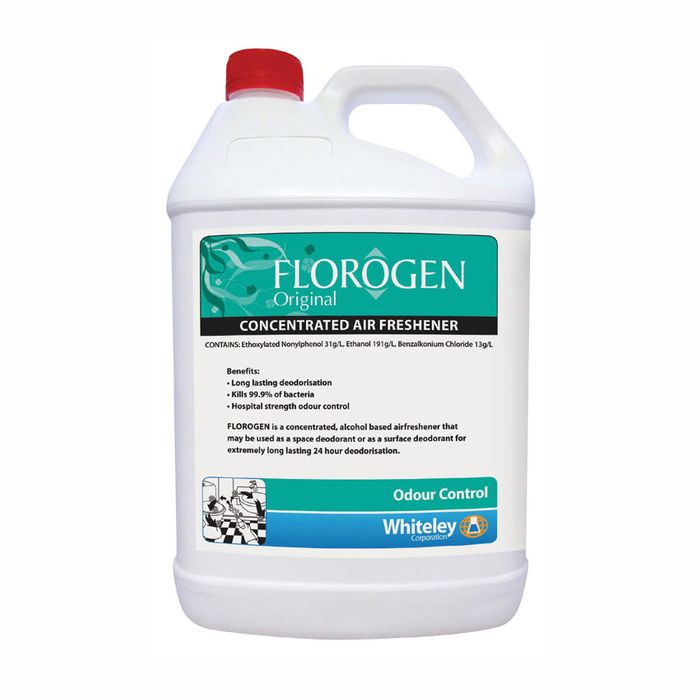 Florogen Original is a specially formulated, alcohol-based, surface and space deodorant. Florogen Original removes unwanted odours and provides a positive method for increasing hygiene in the immediate area of use. Florogen Original has a pleasant fragrance and kills 99.9% of bacteria.
