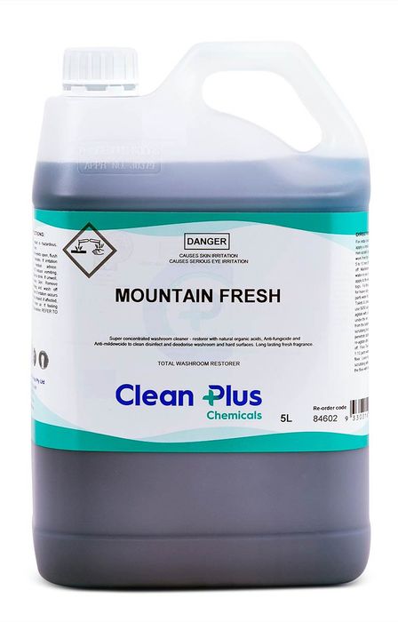 Mountain Fresh is a Natural organic cleaner, blue slightly viscous liquid with a fresh fragrance with anti-fungicide to retard mould growth. This product is designed to effectively clean, disinfect and deodorise washrooms, showers floors walls toilet bowls, ceramic urinals and stainless steel sinks. It will not treat serious mould outbreaks. For Mould killing and Removal use Mould Moss Algae Remover, Biosan or Percide