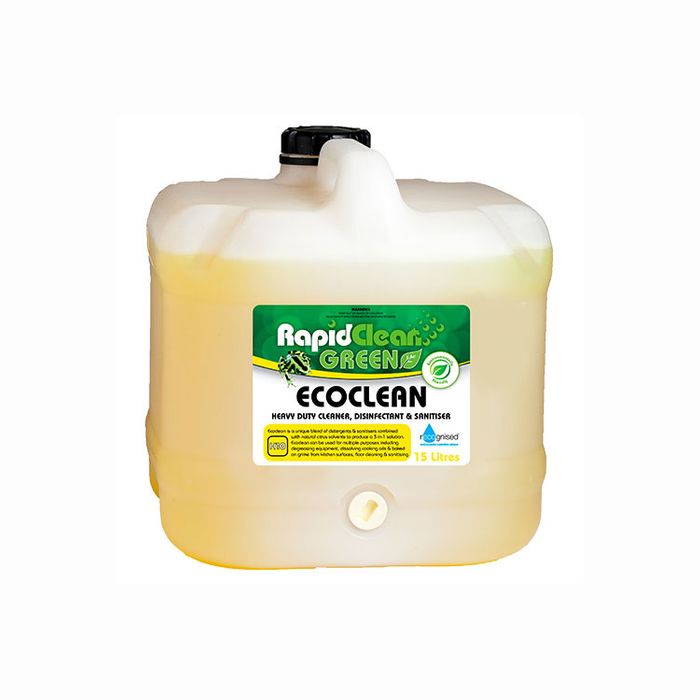 RapidClean EcoClean Heavy Duty Sanitiser is a heavy-duty cleaner, sanitiser and disinfectant detergent with natural citrus solvents. Ecoclean is environmentally friendly and is an excellent floor cleaner and degreaser suitable for most hard surfaces.