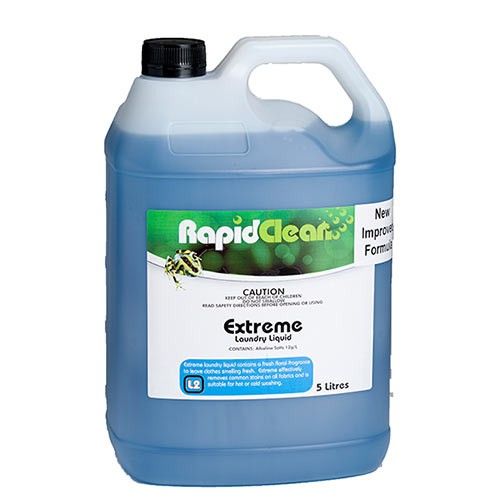 RapidClean Extreme Concentrated Laundry Liquid contains a floral fragrance to leave clothes smelling fresh. Extreme Concentrated Laundry Liquid effectively removes common stains on all fabrics and is suitable for hot or cold washing. Extreme is Grey Water safe and complies with Australian standards for phosphate content.