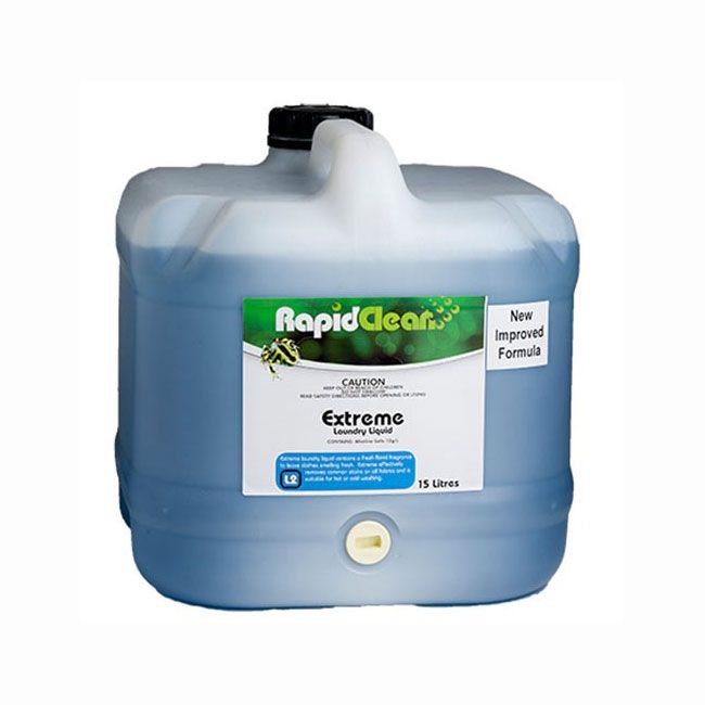 RapidClean Extreme Concentrated Laundry Liquid contains a floral fragrance to leave clothes smelling fresh. Extreme Concentrated Laundry Liquid effectively removes common stains on all fabrics and is suitable for hot or cold washing. Extreme is Grey Water safe and complies with Australian standards for phosphate content.