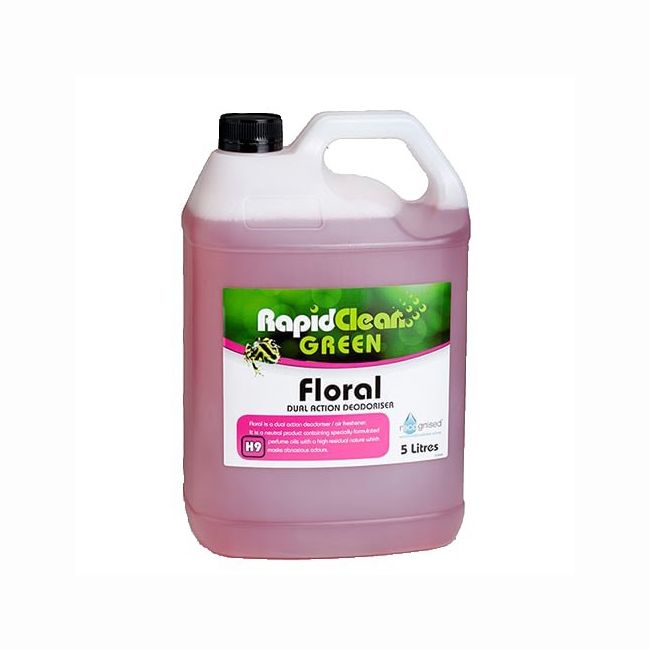 RapidClean Floral Deodoriser and Air Freshener is a dual-action deodoriser and air freshener. It contains a broad-spectrum bactericide and specially formulated floral perfume oils with high residual nature. This enables the product to sanitise and deodorise with a single application. Floral can be used as a spray and wipe or for light mopping.