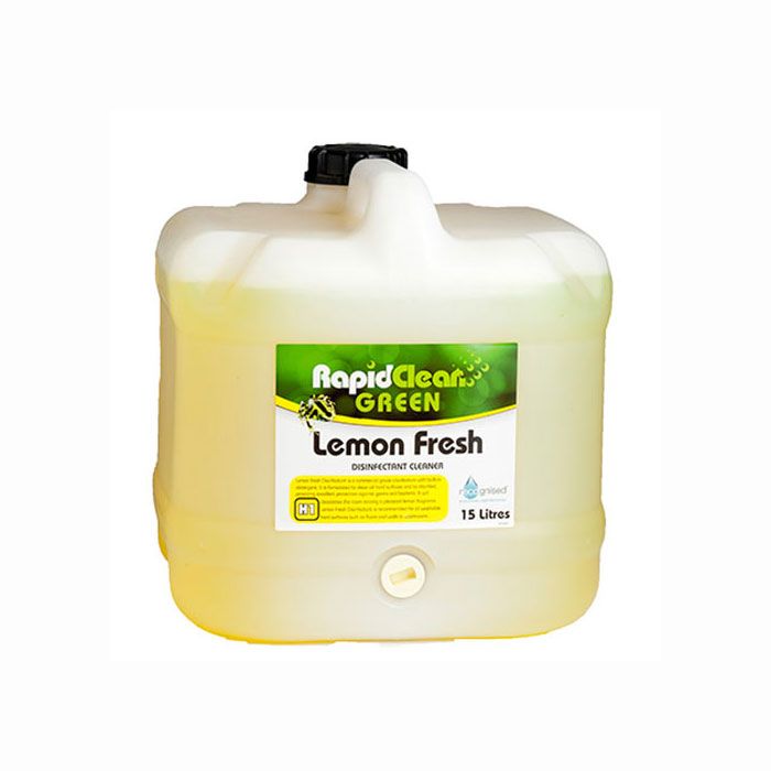 RapidClean Lemon Fresh Disinfectant is a clear yellow-coloured liquid that contains a combination of cleaning agents and highly effective quaternary sanitizers plus a long-lasting lemon residual perfume.