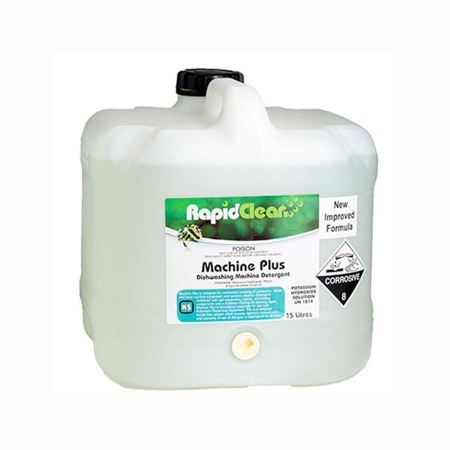 RapidClean Machine Plus Dishwasher Detergent is for mechanical washing of glassware, dishes and utensils. Machine Plus is chlorinated, non-foaming, grease-cutting and emulsifying detergent formulated for use through an automated dispenser providing a total hands-free operation.