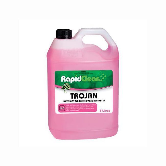 Trojan is a heavy-duty degreaser and floor cleaner. Trojan is a blend of solvents, inorganic water conditioning agents, non-ionic surfactants and soil anti-deposition agents.