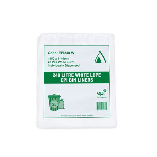EPI bin liners are suitable for all 240L garbage bins. Ideal for light to mid-weight applications in washrooms, offices, food halls, restaurants, schools, and councils.