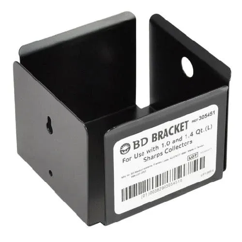 Sharps Bracket for BD Sharps Containers is suited for use with the 1.4L BD one-piece sharps collector.