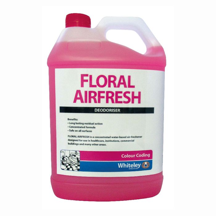 Floral Airfresh is a concentrated air freshener with a pleasant floral fragrance designed for long-lasting deodorisation. Floral Airfresh is suitable for use in healthcare, institutions, commercial buildings, and many other environments.