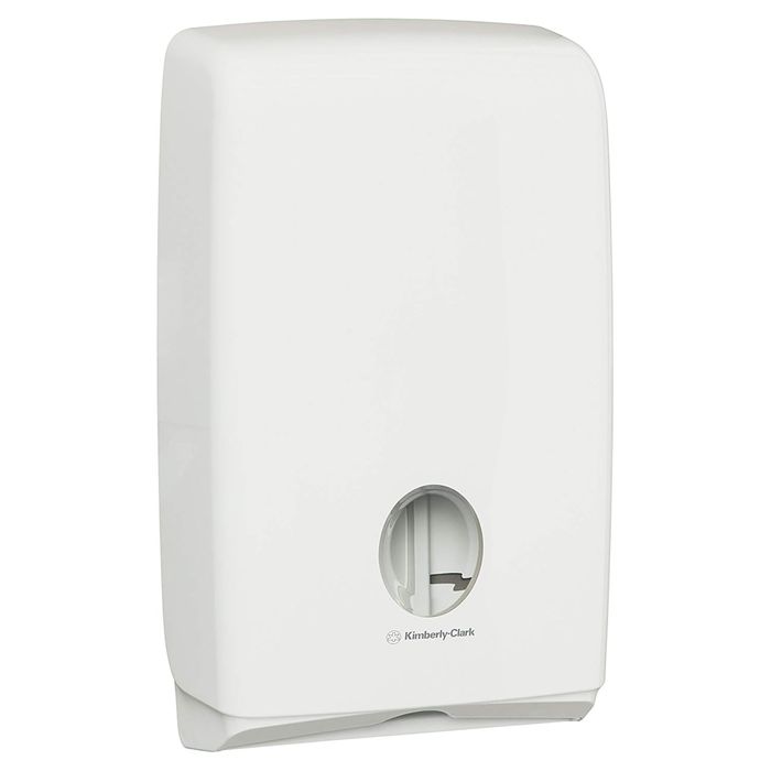 The KIMBERLY-CLARK PROFESSIONAL® AQUARIUS® paper towel dispenser is designed with smaller washrooms in mind for the dispensing of selected KLEENEX® and SCOTT® compact hand towels.