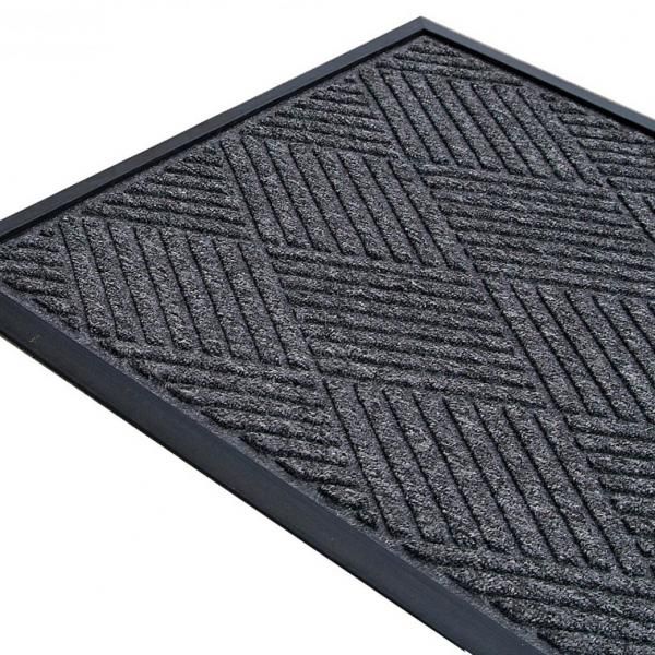 Prestige Mat is an attractive, hardwearing mat for medium-traffic entrances. It is constructed with a classy diamond-pattern polypropylene surface and a heavy-duty rubber backing. The raised, reinforced rubber border assists in trapping moisture and dirt from footwear, while the non-slip underside pattern holds the mat in place. The all-weather construction of the Prestige Mat makes it ideal for indoor and outdoor use. Available in four popular sizes and a popular charcoal colour, this mat will enhance your doorways and help keep your floors clean and dry.